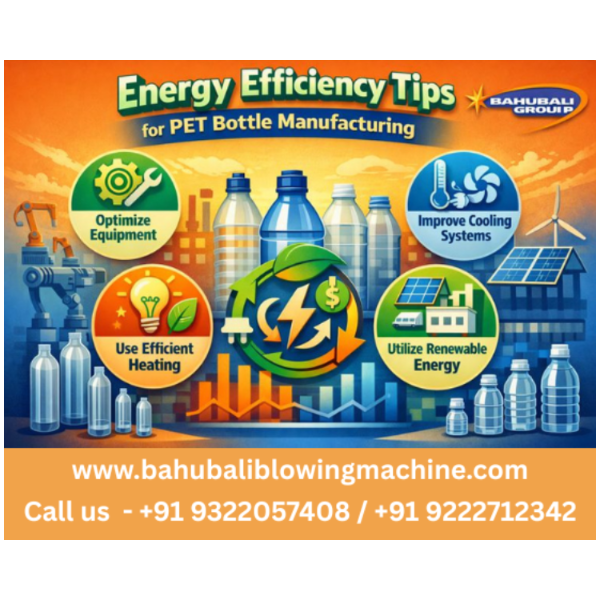 Best Practices to Improve Energy Efficiency in PET Bottle Manufacturing Energy cost is one of the biggest expenses in PET bottle manufacturing. From preform heating to compressed air and cooling systems, every stage of production uses power. If energy efficiency is ignored, even a high-output plant may struggle to make good profits. Improving energy efficiency is not about reducing quality—it is about running the PET bottle blowing machine in a smarter and more controlled way. Where does most energy get used? In PET bottle manufacturing, power is mainly consumed in preform heating, air compressors, cooling systems, motors, and drives. Once manufacturers understand these areas, it becomes easier to control energy usage. Is overheating preforms increasing electricity bills? Yes. Many plants use higher heater intensity than required. This increases power consumption without improving bottle quality. Correct heating profiles based on preform weight and bottle design help save energy. Well-designed automatic PET bottle blowing machines allow accurate heating control, which reduces unnecessary power loss. Why is compressed air such a costly utility? Compressed air generation consumes a lot of electricity. Small air leaks or excess pressure can silently increase monthly power bills. Maintaining air pipelines, using correct blowing pressure, and optimizing air timing in a PET bottle stretch blowing machine significantly reduce energy waste. Does running at maximum speed save or waste power? Running machines at unstable high speed increases power spikes, rejection, and machine stress. A stable production speed—where quality and output are balanced—often consumes less power per bottle than aggressive high-speed operation on a Plastic Bottle Making Machine. Can poor cooling increase energy consumption? Yes. Inefficient cooling increases cycle time and forces machines to work longer. Proper mold water flow, clean cooling channels, controlled water temperature, and good ventilation help bottles stabilize faster with lower energy load. How does rejection increase hidden power costs? Every rejected bottle wastes heating energy, compressed air, and machine running time. Reducing rejection through better process control directly improves energy efficiency. Does automation really help control energy usage? Automation maintains repeatable settings and reduces operator mistakes. A good automatic PET bottle blowing machine ensures energy is used only where needed. Machines from Bahubali Blowing Machine are designed to deliver stable cycles and consistent output, helping manufacturers control power consumption effectively. Why is preventive maintenance important for energy saving? Poor maintenance causes friction, air leakage, and heat loss. Regular cleaning of heaters, sealing air systems, maintaining motors, and checking cooling performance keep energy usage under control. Should energy efficiency matter while buying machines? Yes. Energy-efficient machines may cost slightly more initially but save much more in the long run. Indian manufacturers like Bahubali Blowing Machine focus on energy efficiency, strong build quality, and real factory conditionshelping manufacturers reduce operating costs over time. Improving energy efficiency in PET bottle manufacturing is a continuous effort. By optimizing heating, reducing air wastage, stabilizing production speed, improving cooling, and following strict maintenance, manufacturers can lower power consumption without affecting quality. Energy-efficient production not only reduces costs but also creates a more stable, profitable, and sustainable manufacturing business.