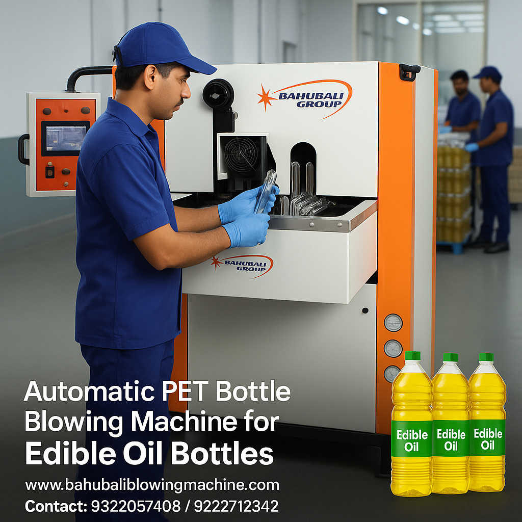 Automatic PET Bottle Blowing Machine for Edible Oil Pet Bottles by Bahubali Group! If you're in the edible oil business, this machine is a perfect fir in your Operations. Bahubali’s Automatic PET Bottle Blowing Machine is fast, easy to operate, and built for long-term use. ✅ Why it’s the right choice for your factory: ⚡ High-speed production – More bottles in less time 💯 0% rejection – Every bottle comes out perfect 🔄 Quick mould change – No production delay 🛠️ Low maintenance – Strong build, minimum servicing 🧴 Made specially for edible oil packaging: Suitable for PCO, CTC, ROPP Preforms Short neck and Long Neck Both cab be done easily. Perfect for 50 ml to 1litre edible oil bottles. 👷♂️ Easy to use – Just One Semi Skilled operator can run it smoothly! 📞 Call us now and upgrade your production line.. 🌐 Website: www.bahubaliblowingmachine.com 📲 Contact: 9322057408 / 9222712342