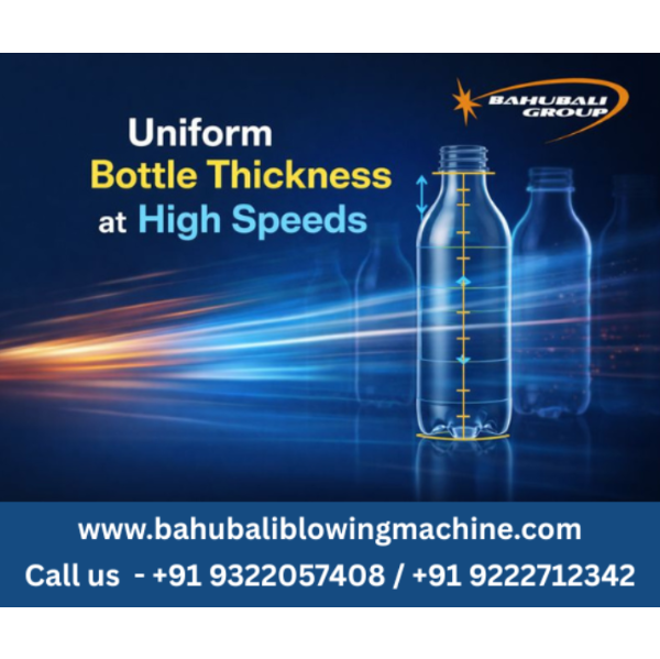 How to Maintain Uniform Bottle Thickness at High Speeds High-speed production is a key goal for PET bottle manufacturers supplying packaged drinking water, beverages, and FMCG brands. Higher speed means more output—but it also brings one major challenge: maintaining uniform bottle thickness. If thickness is not controlled, bottles become weak, rejection increases, and customer complaints follow. Running fast without losing quality requires proper process control, not guesswork. Why does bottle thickness change at high speed? At high speed, the time for heating, stretching, blowing, and cooling becomes shorter. If any step is not balanced, PET material stretches unevenly. This leads to thin side walls, weak bases, thick shoulders, and inconsistent bottle weight. So, the real issue is not speed—it is lack of control at speed. How important is preform heating for thickness control? Preform heating is the base of uniform thickness. Even small temperature variation becomes critical at high speed. Using zone-wise infrared heating, avoiding neck overheating, keeping lamps clean, and matching heating to preform weight help the PET material stretch evenly in a PET bottle blowing machine. Does stretch rod timing affect wall thickness? Yes. The stretch rod controls how the material flows vertically. If timing or speed is incorrect, PET gathers in one area and leaves other areas thin. Correct stretch rod synchronization with air blowing is essential for uniform thickness, especially in high-speed Plastic Bottle Making Machine setups. Is higher blowing pressure the solution? No. Increasing pressure does not improve thickness—it often makes things worse. Excess pressure causes instability and uneven stretching. Balanced low-pressure pre-blow and controlled high-pressure blowing give better results than blindly increasing pressure. Why does mold design matter at high speed? Mold shape, venting, and cooling directly affect thickness distribution. Poor venting traps air, and uneven cooling creates stress zones. Precision mold design supports even material flow and helps maintain thickness even at higher output rates. Can reducing cooling time cause thickness problems? Yes. Cutting cooling time may increase speed, but it causes shape instability later. Proper cooling locks the wall thickness and prevents post-blowing deformation. This step should never be rushed in high-speed production. Do frequent speed changes affect thickness? Very much. Sudden speed changes disturb heating and air balance, leading to thickness variation. Maintaining a stable, optimized speed produces better results than constantly increasing and decreasing speed. How does automation help maintain uniform thickness? Automatic PET bottle blowing machines control heating, stretch timing, air pressure, and cooling precisely. This removes operator variation and ensures repeatability. Machines from Bahubali Blowing Machine are designed with process stability in mind, helping manufacturers maintain uniform thickness even during long, high-speed shifts. Why is regular monitoring still necessary? Even with automation, regular checks help catch problems early. Measuring bottle weight, checking thickness at base and shoulder, and visual inspection prevent large-scale rejection. Why do manufacturers trust Bahubali Blowing Machine for high-speed stability? Bahubali Blowing Machine focuses on stable machine design, precise control systems, and Indian working conditions. Their machines support high-speed production while maintaining consistent bottle thickness and quality. Conclusion Maintaining uniform bottle thickness at high speeds is not about slowing down—it is about balancing the process. With proper heating control, correct stretch and blow settings, good mold design, sufficient cooling, and reliable automation, high output and good quality can go together. Well-engineered PET bottle blowing machines help manufacturers achieve higher productivity without sacrificing bottle strength, quality, or customer trust.